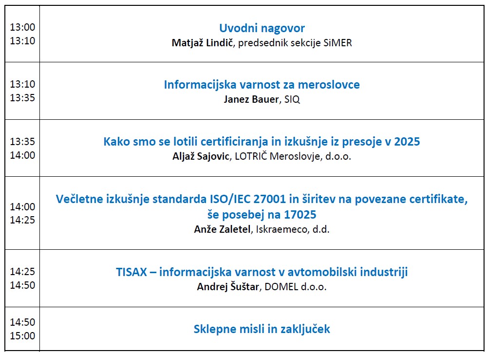 Informacijska varnost postaja eno ključnih področij, ki se dotika prav vsakega meroslovca – ne glede na to, ali prihaja iz raziskovalnega okolja, industrije ali neodvisne laboratorijske prakse. V času digitalizacije in vse večjih zahtev po sledljivosti meritev so poznavanje standardov, certifikacij in praktičnih izkušenj nepogrešljivi.